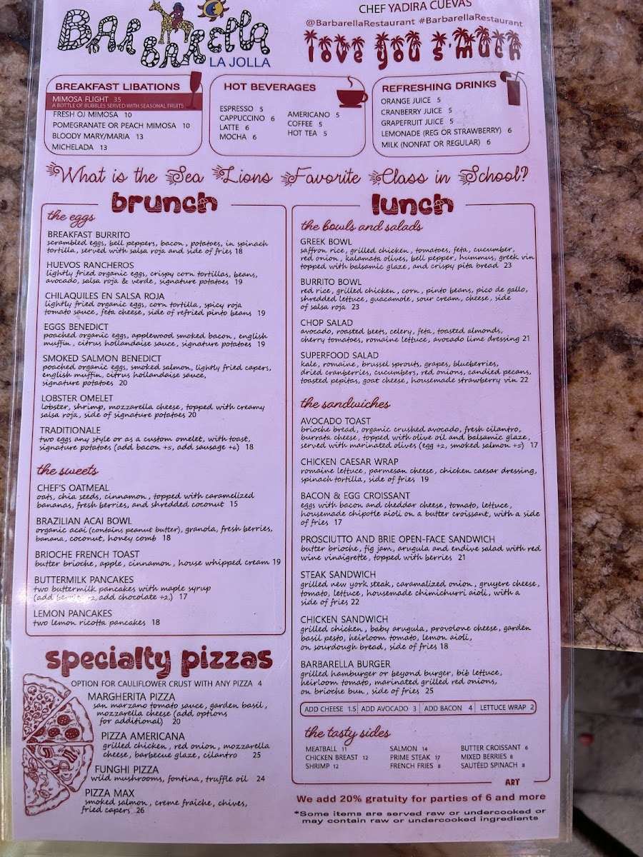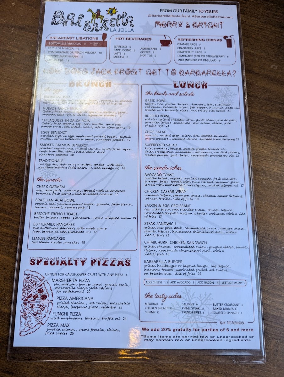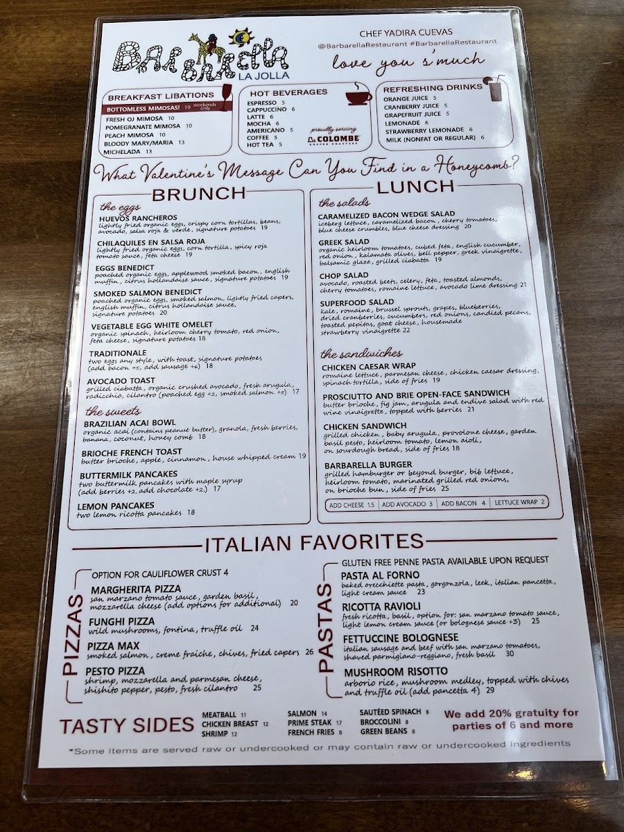 If you're looking for a laid-back dining experience with fantastic flavors, look no further than the Barbarella Restaurant & Bar Menu. Nestled in the heart of La Jolla, this spot at 2171 Avenida De La Playa offers an inviting atmosphere with a diverse selection of dishes that are sure to satisfy any craving. Whether you're in the mood for something light or a hearty meal, their menu has something for everyone.